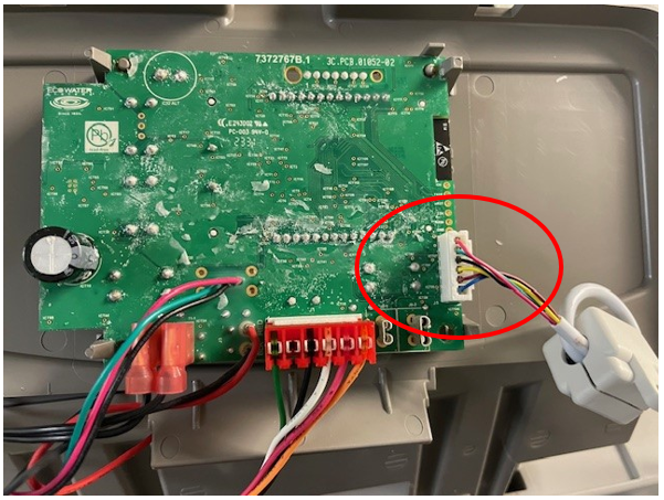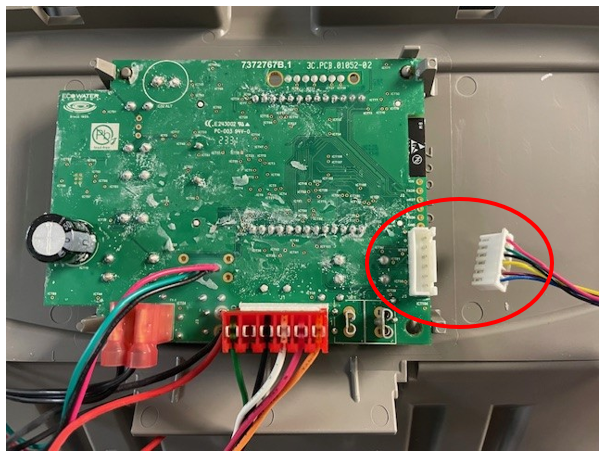 9. You'll notice the shut off valve wiring is connected on the side. You need to disconnect the wiring from the control board by pulling it up and out.